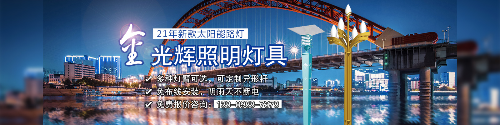 沈陽金光輝道路照明工程有限公司是一家從事太陽能路燈、庭院燈、高桿燈、景觀燈、草坪燈、工礦燈、LED照明、監(jiān)控桿、信號燈桿、音樂噴泉等室內(nèi)外照明燈具綜合性生產(chǎn)廠家及專業(yè)的研發(fā)、生產(chǎn)、銷售、服務(wù)為一體的技術(shù)企業(yè)。